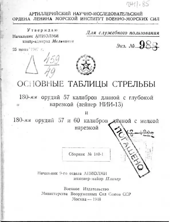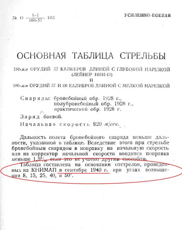Внимательный читатель обратит внимание на то, что приводимые мною «Основные таблицы стрельбы» составлены в 1948 году, т.е. уже после войны. Что, если к тому времени в СССР научились делать какие-то более качественные лейнеры, чем довоенные? Но на самом деле таблицы стрельбы усиленно-боевым составлены на основании фактических стрельб в сентябре 1940 г.: