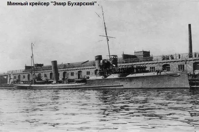 Получив из Германии комплекты чертежей по корпусу, заводы еще в июне начали разбивку плаза, заготовку деталей набора и обшивки. В связи с военным временем церемония закладки этих минных крейсеров прошла весьма скромно, тем более, что для них закладные доски даже и не предусматривались. Головной крейсер «Эмир Бухарский» спустили на воду 30 декабря 1904 года в Гельсингфорсе. 22 марта следующего года был спущен на воду «Финн». Лаконичное название последнего корабля утвердилось впоследствии на флоте за всеми минными крейсерами этого типа.