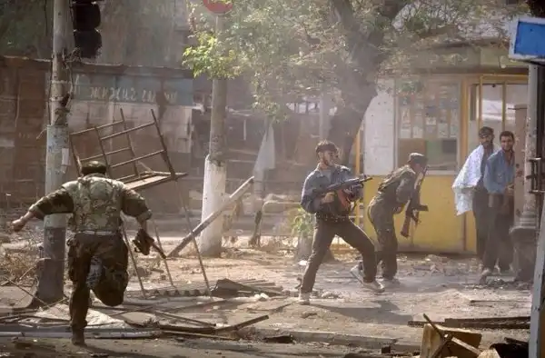Улицы безлюдны, мертвая тишина, а по обе стороны дороги – пятиэтажки, из которых, казалось, за нами наблюдала смерть. Одна за другой прошли команды: «Огня не открывать» и «Не спрыгивать на обочины», которые заминированы. А потом словно из-под земли появились вооруженные люди и поприветствовали нас победным: «Аллаху акбар!».