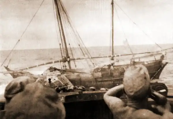 U 188 таранит рыбацкую лодку. Снимок сделан 11 февраля