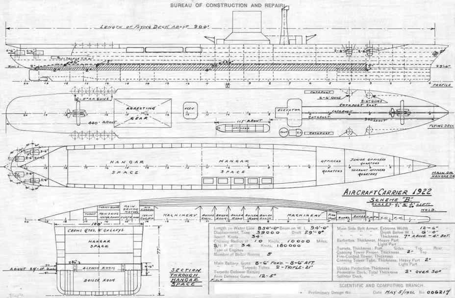 Проект быстроходного авианосца водоизмещением в 39 000 т, 1922 год