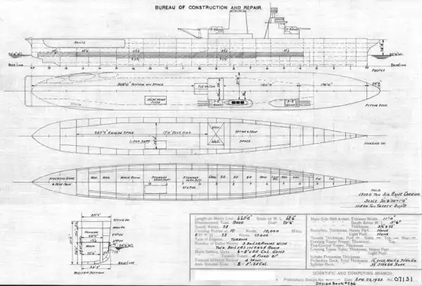 По проекту ниже ватерлинии в районе погребов и машинно-котельного отделения должна была проходить внутренняя продольная переборка толщиной 120 мм, у днища утончавшаяся до 50 мм. В такую переборку, пусть даже локальную, при заданном водоизмещении в 10 000 т верится с трудом – напомним, что ни один из американских крейсеров 30-х годов не имел сколь-нибудь действенной противоторпедной защиты.