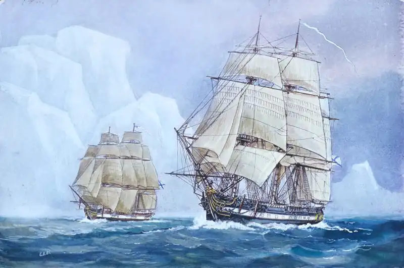 Эта честь принадлежит русским морякам — 28 января 1820 года шлюпы «Восток» и «Мирный» впервые подошли к покрытому толстым слоем льда берегу Антарктиды. Экспедицией руководили Фаддей Беллинсгаузен и Михаил Лазарев.