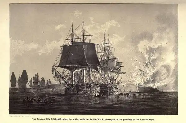 Командир русского корабля решил защищаться до последнего и смог своими силами посадить его на мель. Англичане повредили линейный корабль артиллерийским огнем, а затем пошли на абордаж. «Всеволод» был захвачен только после кровопролитной рукопашной схватки. Не сумев снять русский корабль с мели, англичане сожгли его. Тем не менее от намерения атаковать стоящую в Балтийском порту эскадру Ханыкова союзникам пришлось отказаться – русские возвели дополнительные береговые батареи, у входа на рейд были установлены боны. В начале октября, с наступлением осенних штормов и начавшейся нехватки провизии, англо-шведская эскадра была вынуждена снять блокаду с Балтийского порта и уйти в Карлскруну. Фактически это было единственное за всю войну боевое столкновение линейных сил с противником.
