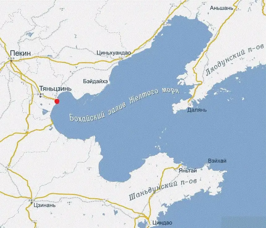 Побережье Бохайского залива Жёлтого моря, современная карта.