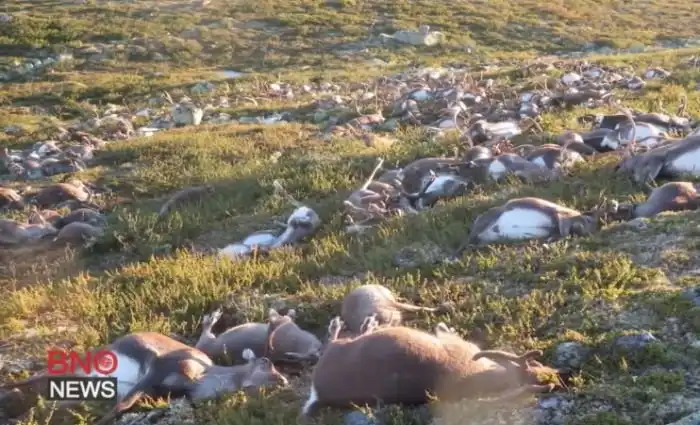 26 августа в национальном парке Хардангервидда на севере Норвегии от удара молнии погибло рекордное количество животных. На горном плато Хардангервидда местный егерь обнаружил 318 трупов животных, еще пятерых пришлось добить из-за травм несовместимых с жизнью. Все животные находились в радиусе 50 метров от эпицентра удара. По мнению специалистов, все случилось из-за того, что в момент удара животные в стаде держались очень близко друг к другу и ток прошел через их тела. Фото не для впечатлительных.