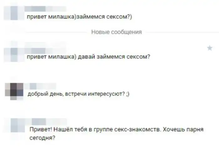 Последовав "рекомендации": создали фейковую страницу девушки и вступили в упомянутые выше сообщества, нам начали поступать предложения интимного характера от молодых парней и мужчин. Кто-то предлагал хорошо провести вечер, а кто-то не постеснялся и сделал предложение прямо.