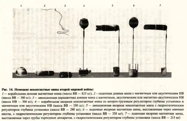 Так, в Финском заливе, где фашисты старались создать непреодолимый минный барьер, линии минных заграждений состояли из нескольких рядов: в первом из них, как правило, стояли мины с ловушками, в последующих - мины различных образцов, предназначавшиеся против малых надводных кораблей. Все мины имели разные углубления - от 20-30 сантиметров до 1,5-2,0 метра, а интервал между минами составлял 20, 30 и 40 метров. Чтобы затруднить траление, немцы прикрыли линии мин большим количеством минных защитников. Также на минах вместо стандартного минрепа из стального троса нередко ставили шестиметровую цепь, устойчивую к воздействиям резаков подсекающих тралов. В поздних постановках на эту цепь стали еще прикреплять два-три резака против тралящих частей. Были даже мины, снабженные специальными приспособлениями, позволяющими пропускать тралы, что резко снижало эффективность траления.