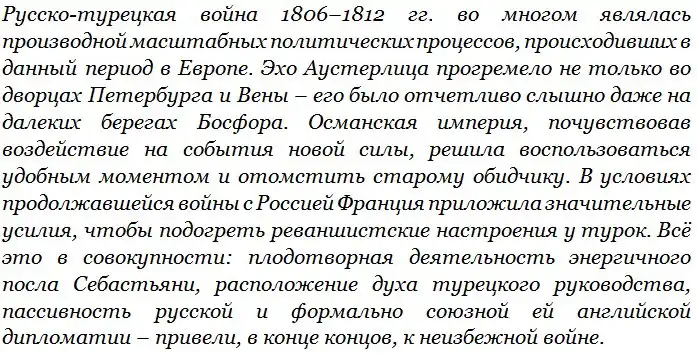 Очередной военный конфликт начался для России в весьма неблагоприятных условиях, когда основные силы империи были задействованы в борьбе с наполеоновской Францией. Важнейшим фактором являлась военно-морская составляющая, оказавшая значительное влияние на ситуацию внутри Османской империи в первый период войны.