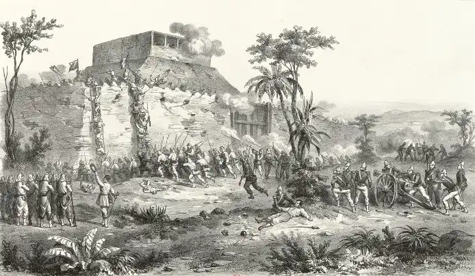 Европейцы атакуют форты Дагу, гравюра середины XIX века