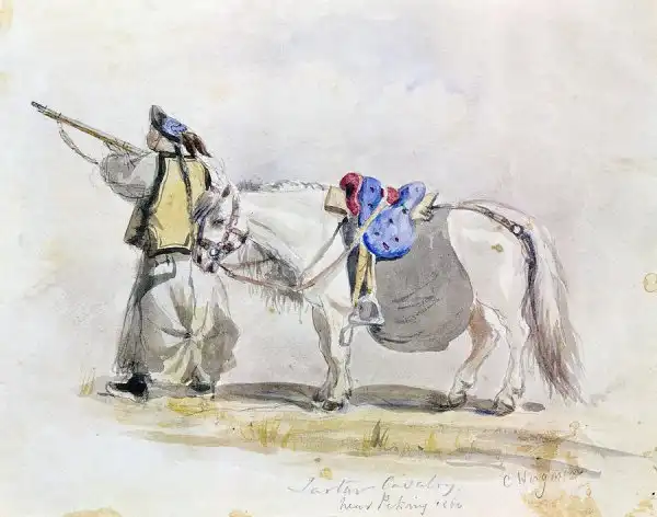 Маньчжурский кавалерист, европейская акварель середины XIX века