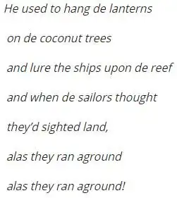 Другой знаменитый разбойник Барбадоса – Сэмюел Холл Лорд, более известный как Сэм Лорд – ухитрялся грабить корабли, не выходя в море. Для этой цели он разработал оригинальную методику: по ночам вывешивал фонари на деревьях возле своего загородного дома. Мерцающий свет вводил в заблуждение капитанов, следовавших в Бриджтаун, они думали, что видят огни города. Суда сбивались с курса и попадали на прибрежные рифы… На берегу несчастных поджидали Сэм Лорд и его подручные. Головорезы безжалостно расправлялись с выжившими моряками и присваивали себе содержимое трюмов потерпевших крушение кораблей. Так, во всяком случае, гласит легенда.