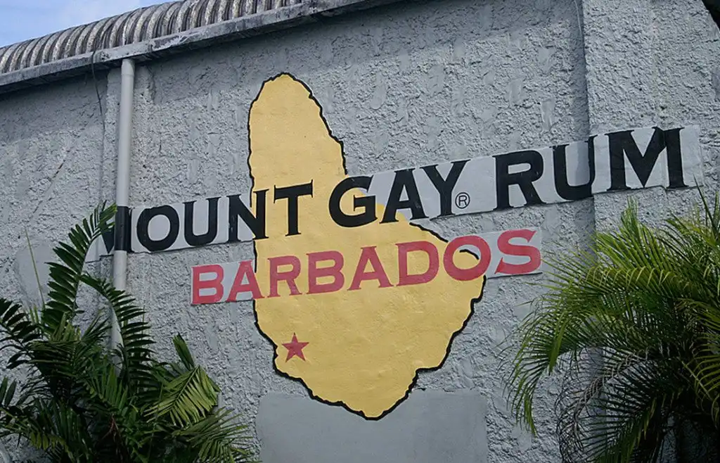 На этикетке рома «Mount Gay» изображены очертания острова Барбадос