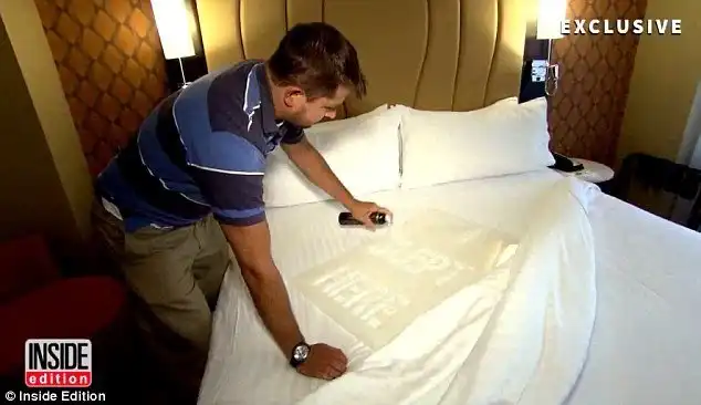 Команда журнала Inside Edition в рамках своего спецпроекта отправилась на проверку девяти престижных отелей Нью-Йорка. Объектом проверки стало постельное белье: с помощью особой краски гости оставляли на наволочке и простыне сообщение, которое видно лишь в ультрафиолетовом свете, но легко смывается водой, а уже через несколько дней повторно наведывались в номер.