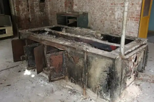 Внутри удалось побывать после небольшого пожара, произошедшего в конце сентября того года. Пожарные сломали часть забора, доступ на территорию оказался открыт. Дверь также оказалась нараспашку. Можно сказать, что нам повезло - охраны в здании не было.