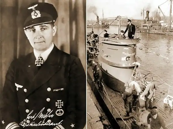 Йост Метцлер (1909–1975). Справа: U 69 на базе. На её рубке