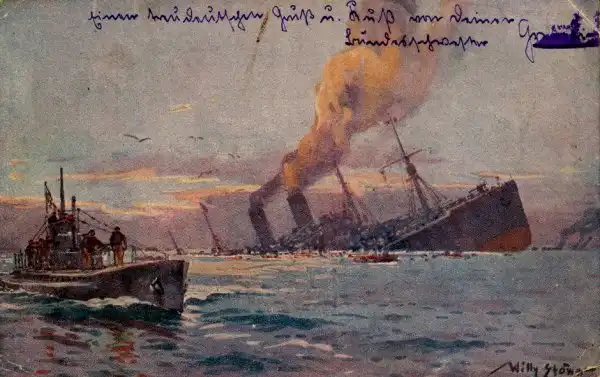 А уже 7 мая произошло событие, которое серьезно повлияло на дальнейший ход всей мировой войны — подлодка U-20 под командование капитана Швигера потопила большой пассажирский пароход «Лузитания» (31396 тонн) у берегов Ирландии. Когда корабль еще был в Нью-Йорке, посольство Германии в США через газеты предупредило о возможной атаке на лайнер, но люди продолжили покупать билеты. 7 мая пароход был замечен U-20, которая к тому моменту уже отстреляла почти весь боезапас за исключением одной торпеды, и потому собиралась возвращаться на базу. Однако, заметив столь лакомую цель, Швигер передумал. В результате лайнер, в правый борт которого попала торпеда, затонул, погибли 1198 человек, включая почти сотню детей. В число погибших вошли и 128 американцев, в том числе принадлежащих к «элитам общества», что вызвало в США бурю возмущения. Вашингтон не интересовали оправдания немцев, которые указывали на то, что судно шло без флага и с закрашенным названием, что пассажиров предупреждали об опасности. Германии была отправлена резкая нота, в которой говорилось о том, что правительство США не может допустить повторения подобной трагедии и протестует против атак на торговые суда, гибели американских граждан. Отношения между странами крайне обострились. Газеты начали писать о скором вступлении США в войну на стороне Антанты.