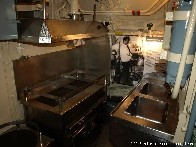 ВВС - это не вражий голос, а фирма, сделавшая турбонаддув для дизеля и специальную установку для сушки воздуха. Конденсированная вода поступала в умывальники и душ (вместе с двумя туалетами они были расположены в специальной изолированной выгородке во втором отсеке).