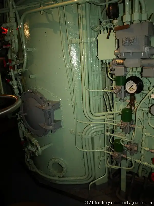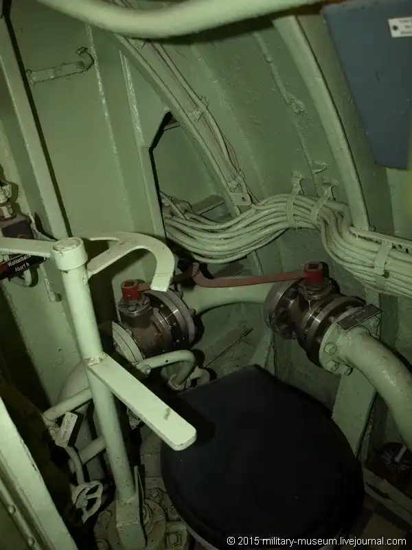 Но, перед выходом на поверхность, мы заглянем в последний, шестой отсек - кормовой. Там расположен резервный пост управления рулями, баллоны с сжатым воздухом и устройства для отстрела ложных целей и установщиков помех: