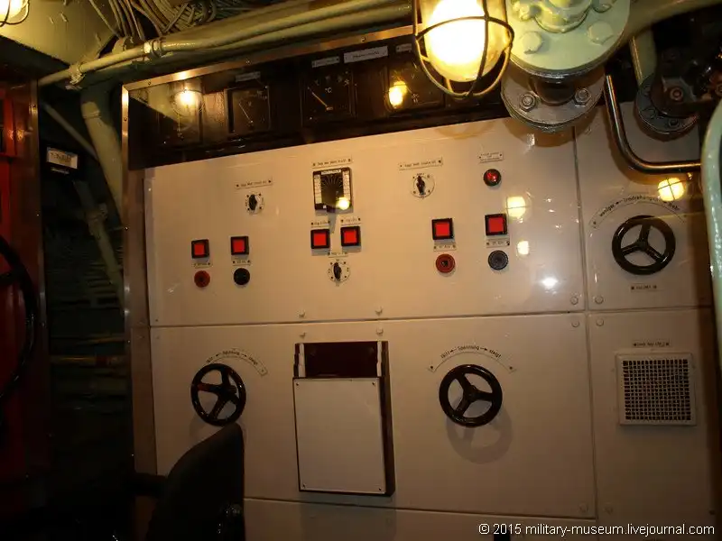 Щиты управления дизелями главными гребными электродвигателями, разделены побортно. Тем, кто путает "лево" и "право", сделана цветовая подсказка: