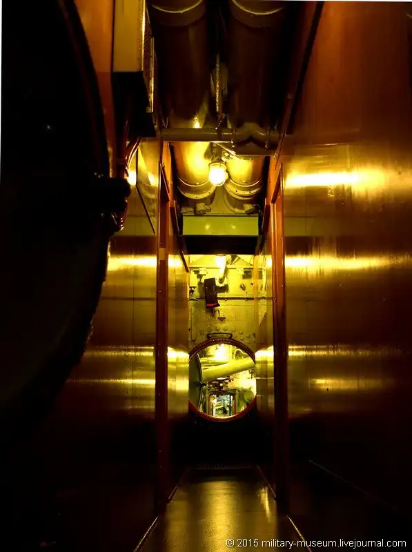 Если смотреть со стороны камбуза, то хорошо видна шахта шнорхеля, проходящая через центральный пост в рубку (и затем за неё):