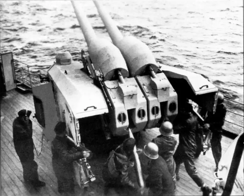 Но имелась и разница – германские установки были палубными, а отечественные СМ-5-1 – башенными. Они, конечно, не были полностью автоматизированы, но все же подача снарядов в боевое отделение при помощи элеваторов выглядела заметно более прогрессивно – расчету оставалось только переложить выстрел на качающийся лоток, остальные операции производились автоматически. Кроме того, расчет был прикрыт от осколков. Вес снаряда советской артисистемы несущественно выше – 15,6-15,9 кг против 15,1 кг немецкой, а вот начальная скорость (1000 м/сек) превосходила таковую у «немки» на 100 м/сек. Скорость вертикального и горизонтального наведения СМ-5-1 также была выше германской – 16-17 град/сек против 12 град/сек.