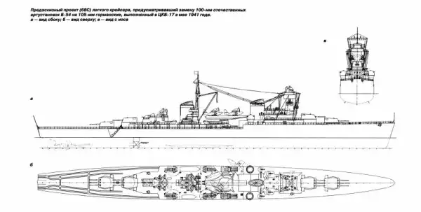 Впрочем, вопрос о 150-мм германских орудиях отпал в конце 1940 г. Во-первых, выяснилось, что в металле этих пушек, башен и СУО к ним еще нет, и надо будет ждать их изготовления, что полностью обессмысливало сделку. Считалось, что отечественные Б-38 и СУО должны получиться лучше германских, а сроки поставки получались сопоставимыми. А, кроме того, первые же расчеты показали, что немецкая техника ощутимо тяжелее советской, требует больше места и электроэнергии, в результате чего водоизмещение легкого крейсера должно было вырасти на 700 тонн, что было также сочтено неприемлемым.