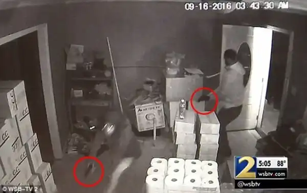 Сделав несколько выстрелов вслед нападавшим и опустошив магазин своего пистолета, решительная женщина спокойно набрала номер 911, сообщив о попытке ограбления и вызвав полицейских. Стрелявшая оказалась менеджером местного ресторана. В этот день она осталась ночевать у соседей, поскольку здесь был складирован товар для ресторана, который виден на пленке - ящики с полотенцами, средствами гигиены и другими предметами ресторанного обихода.