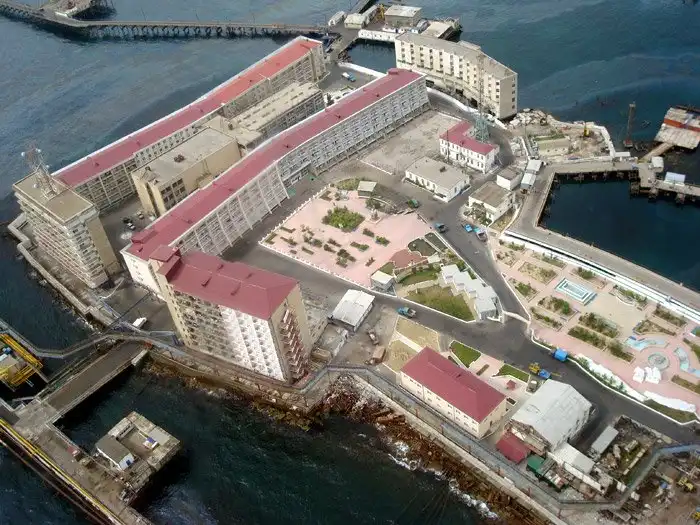 Гавани Северная и Южная находятся у западного берега острова и образованы затопленными судами. Здесь расположены буровые вышки, соединенные эстакадами, на которых размещен поселок рабочих нефтепромыслов. Это самый восточный населенный пункт Азербайджана. Постоянного населения нет.