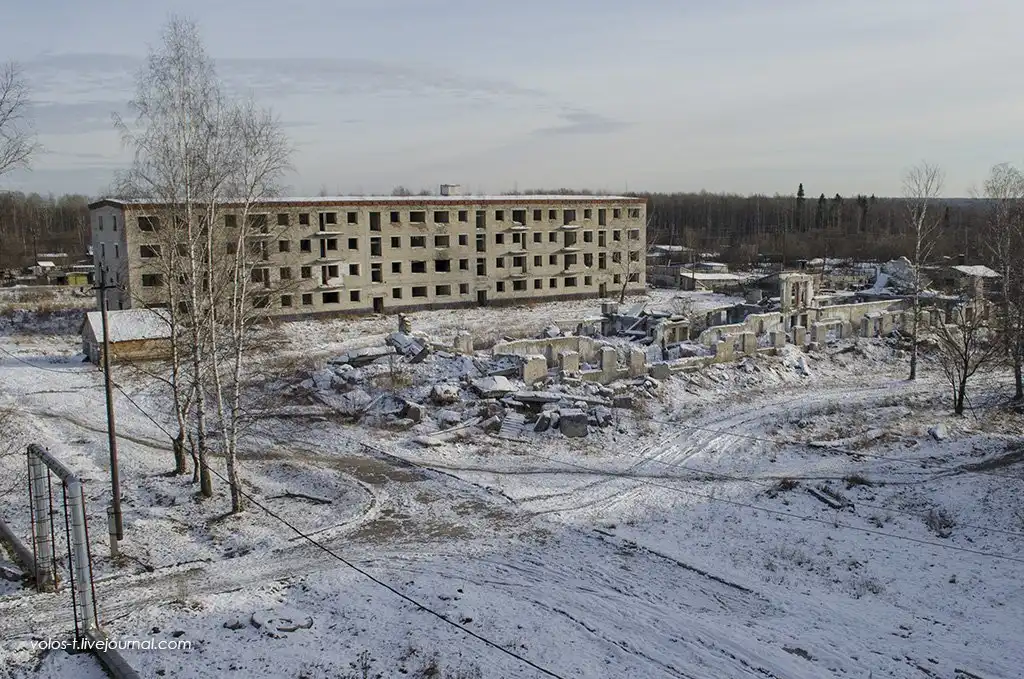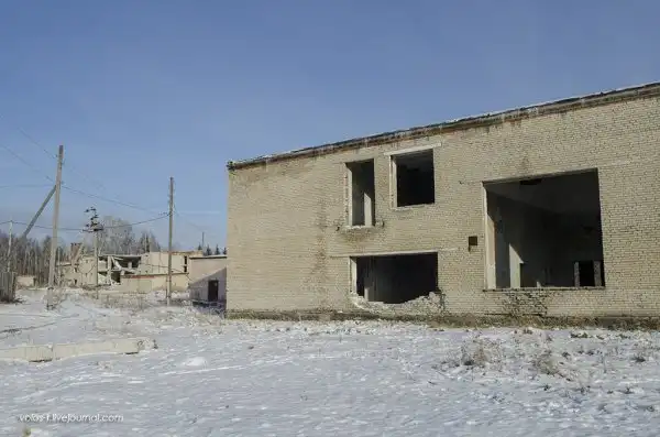 Десятки полуразрушенных зданий по всему поселку, о значении которых можно только догадываться.