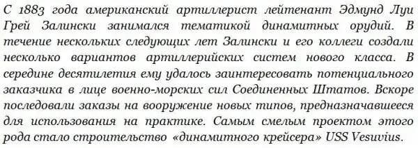 С конца лета 1886 года велась предварительная проработка перспективного проекта корабля с новым вооружением. В сентябре 1887 года федеральное правительство официально заказало разработку и постройку такого корабля, основным вооружением которого должны были стать несколько динамитных пушек. В соответствии с заказом, корабль, получивший имя USS Vesuvius, должен был иметь водоизмещение в пределах 1000 т и нести в качестве главного калибра три 15-дюймовых орудия на стационарной установке. Также следовало использовать некоторое дополнительное артиллерийское вооружение.