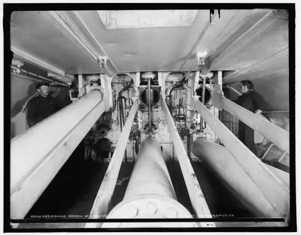 Вскоре после завершения строительства первый в мире корабль, вооруженный динамитными орудиями, вышел на испытания с проверочными стрельбами. Испытания показали, что USS Vesuvius отвечает предъявленным требованиям по размерам и ходовым характеристикам, а также обладает высокой огневой мощью. Было установлено, что при максимальном давлении в канале ствола дульная скорость снаряда, в зависимости от его типа, может достигать 800 футов в секунду (243 м/с). Наиболее тяжелый снаряд с 550 фунтами взрывчатого вещества летел на расстояние не более 1 мили. 200-фунтовый боеприпас имел дальность стрельбы порядка 4 тыс. ярдов (3700 м). Также корабль показал неплохую скорострельность. Во время испытаний 15 выстрелов из трех орудий были выполнены за 16 мин 50 с.