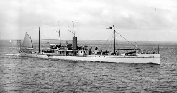 Изображение крейсера USS Vesuvius на открытке начала XX века,