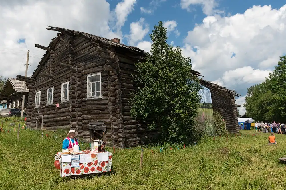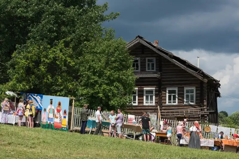 С погодой повезло, после нескольких дождливых дней выглянуло солнце. Солнце немного подсушило дороги, деревенские дороги, они же без асфальта сами знаете какие. Первое впечатление от деревни положительное, дома раскрашенные, крепкие. Впрочем, не везде всё так хорошо, но я не об этом. Заглянув в магазин за водой и твиксом, мы с Владом двинулись по тропинке за остальными. А людей на фестиваль прибывало много, и постоянно подъезжали новые и новые машины, оказалось, мы прибыли к самому началу - вот это везение!