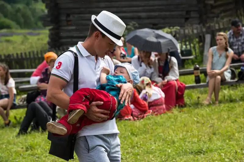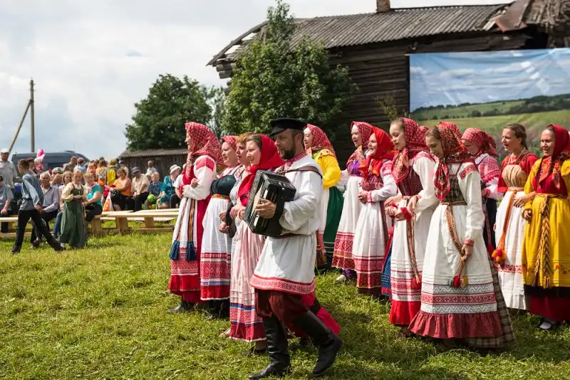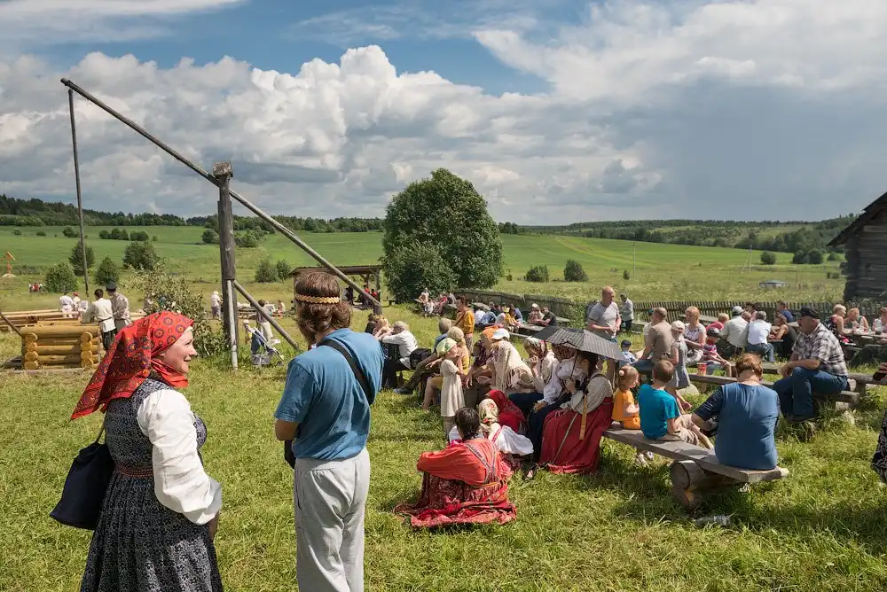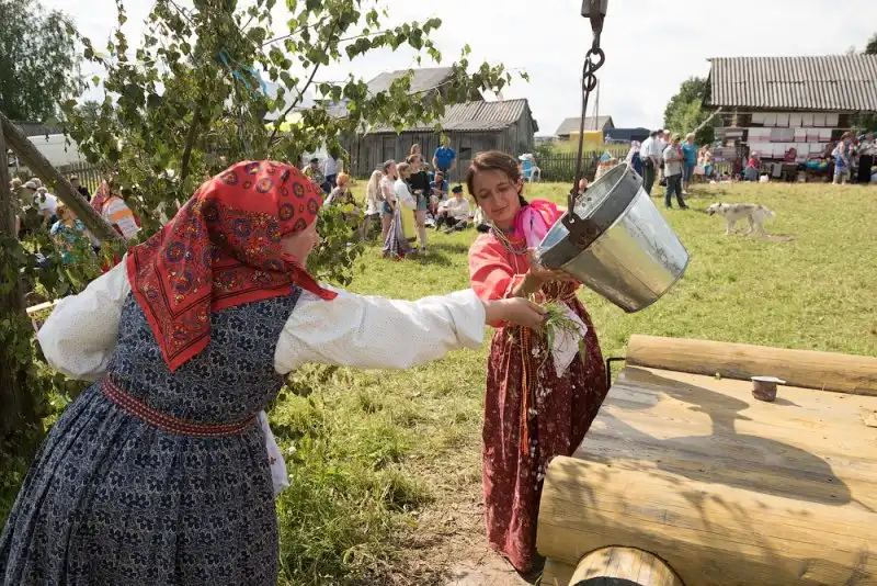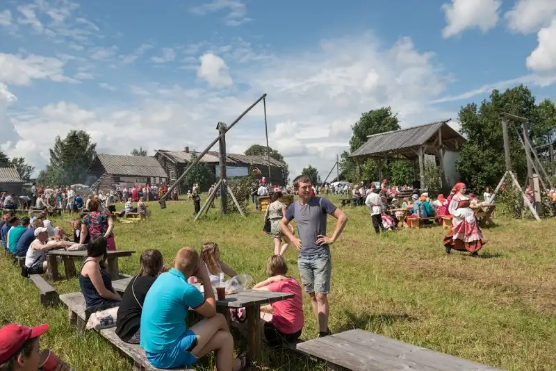 Дорога до деревни непростая, местами больше похожая на полосу препятствия для тяжёлой техники, но как оказалось, мы не зря тряслись в стареньком фольцвагене и потом месили деревенскую грязь - в деревне нас ждал самый настоящий праздник. Не ожидал, что там будет много народу, многие в национальных костюмах, и даже зарубежные гости пожаловали, в общем, мне как фотографу было где разгуляться. И о самом главном - о пиве.