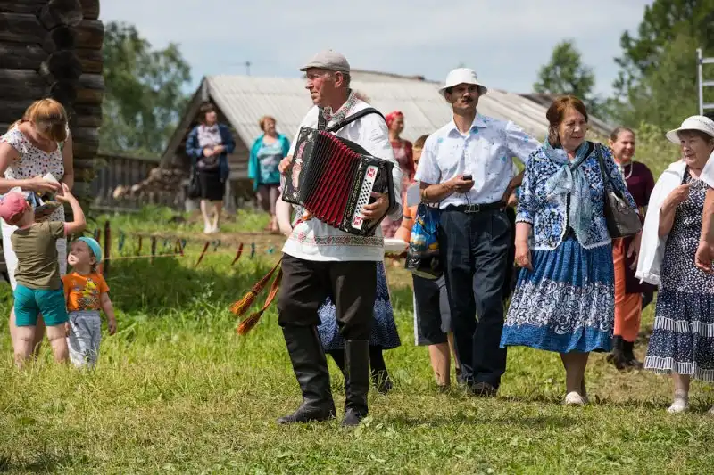 Попив немного пива, пошёл гулять по деревне, а тут такое шествие: девушки под музыку и свист появляется на "центральной площади", за ними мужики, через одного с баянами ))