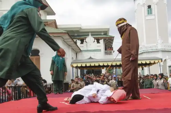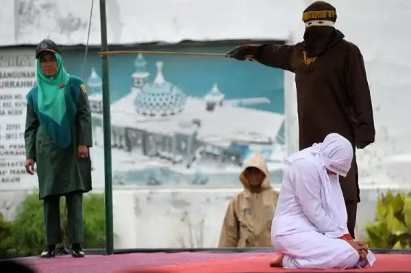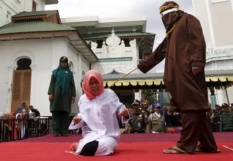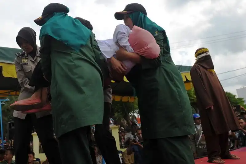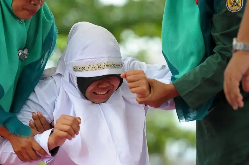 Она была одной из 13 приговоренных к публичному наказанию женщин в возрасте от 21 до 30 лет в провинции Ачех, Индонезия.