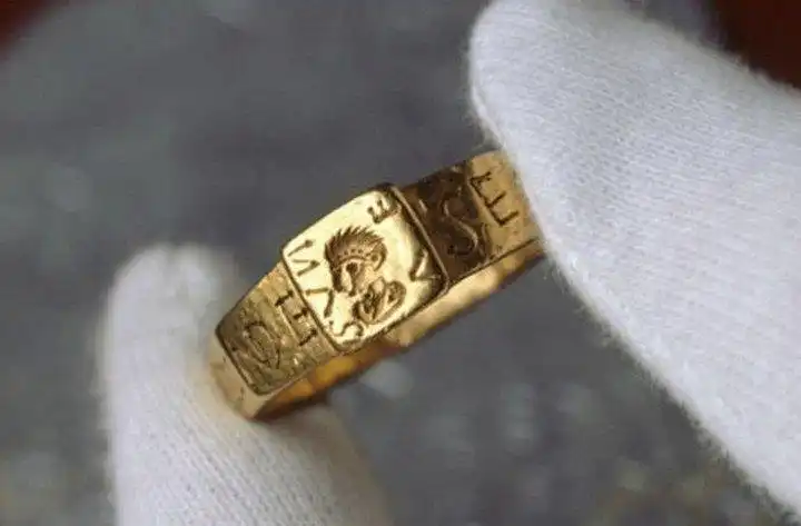 И оказалось, что кольцо не вернулось к хозяину, но нашлось в 1785 году на месте римского поселения Calleva Atrebatum (ныне – Силчестер), более чем в 100 километрах от Лидни-парка. Золотое кольцо действительно было необычным: оно весило 12 граммов и было настолько широким в диаметре, что обычный человек мог носить его только поверх очень толстой перчатки. На квадратной печатке изображён женский профиль с длинными волосами и огромным носом. Буквы вокруг головы образуют слово «VENUS» (Венера). Кроме них, есть буквы и на ободе кольца, которые читаются как «Senicianus vivas in Deo» («Сеницианус живёт в Боге»), тогда как антиквары начала XIX века читали эту надпись несколько иначе «Senicia ne vivas in indecentia» («Сениция не живёт в непристойности»).