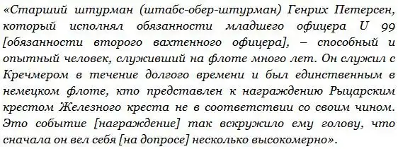 Офицеры разведотдела британского Адмиралтейства, допрашивавшие членов экипажа U 99, дали Петерсену следующую характеристику: