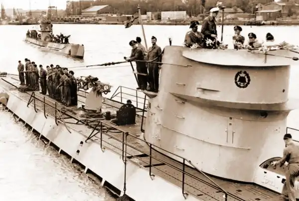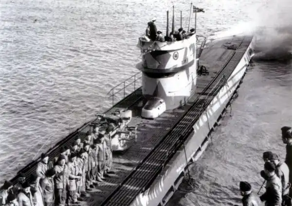 Экипаж подводной лодки U 672 после возвращения из похода,