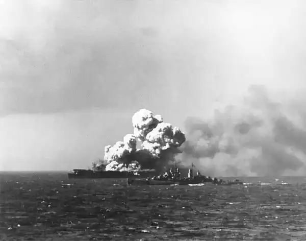 Взрыв «Принстона» после того, как он был торпедирован крейсером «Рено»
