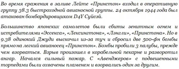 Но в 14.45 «Бирмингем» вернулся к борту «Принстона». Все пожары на нем были потушены, кроме одного, бушевавшего рядом с торпедохранилищем позади ангара.