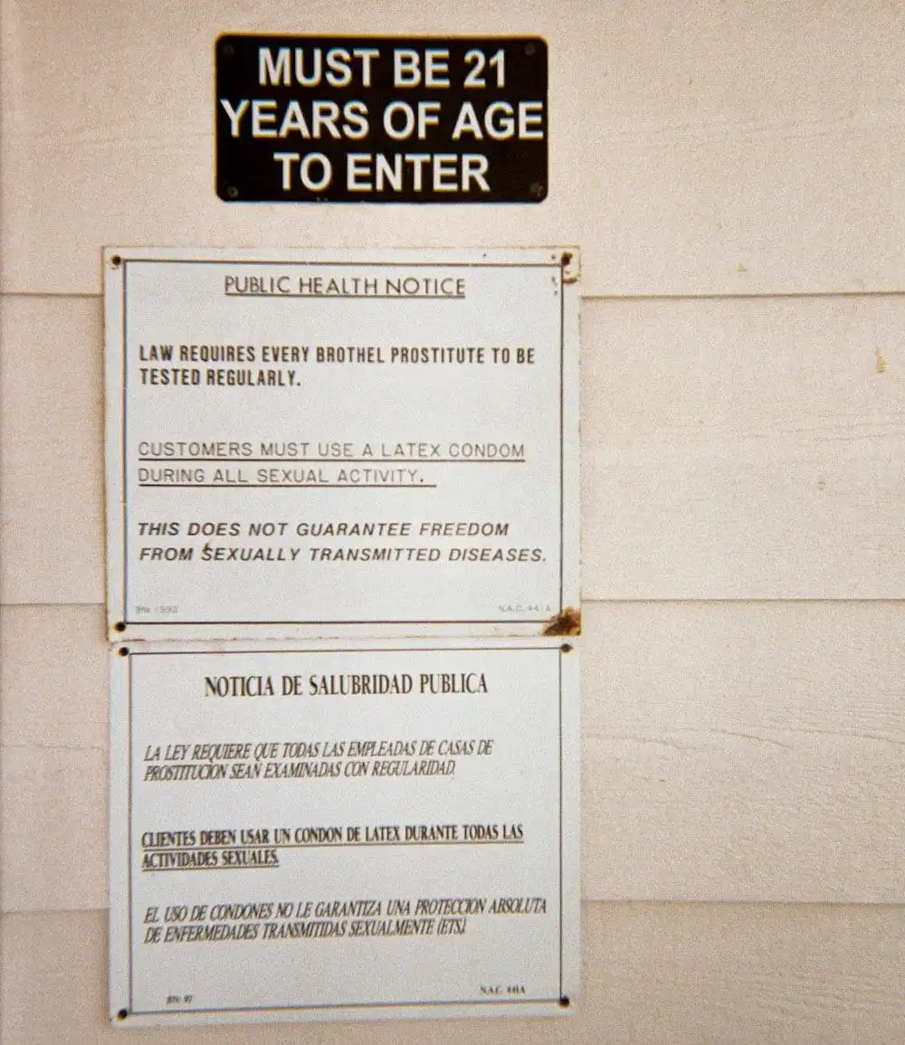 Чтобы поддерживать безопасность и порядок, в Sheri’s Ranch есть много правил. Для защиты приватности наших клиентов и девушек запрещено оборудование для видеозаписи и камеры. (Я, конечно же, нарушаю правила, но при наличии разрешения!) Никакого оружия и наркотиков. Мы учитываем все наши доходы и на следующей неделе получаем чек, так что мы не храним деньги у себя. Если тебя поймают на воровстве или употреблении наркотиков, тебя немедленно вышвырнут с территории. Презервативы обязательны для ВСЕХ видов сексуальной активности — безопасность превыше всего! Никаких домогательств за пределами борделя. Мы считаемся закрытым домом, поэтому, когда мы прибываем сюда и начинаем работать, мы не можем уйти до окончания срока контракта. Это также означает, что клиенты не могут забрать нас из борделя.
