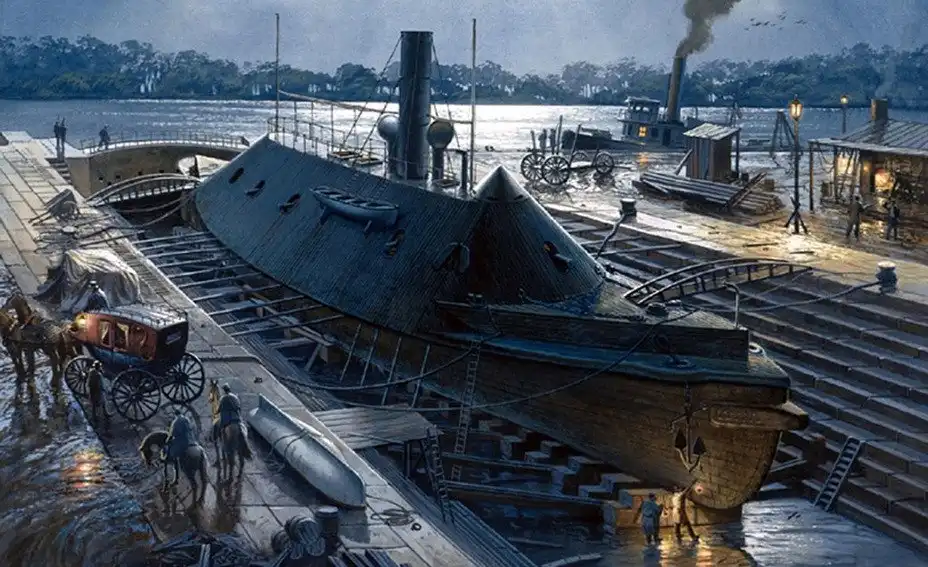 В феврале 1861 года южане создали военно-морской департамент во главе со Стефаном Мэллори. Большому флоту северян, состоявшему из парусных и паровых деревянных кораблей, он предложил противопоставить небольшой флот из броненосцев, первые из которых уже состояли на вооружении в Англии и Франции. По проекту конструктора Джона Портера с 1862 по 1865 год было начато постройкой около 50 броненосцев, но закончено лишь 22. Средняя стоимость одного броненосца составила около 300 000 долларов золотом. Всего южане заказали 150 боевых кораблей, из которых достроили лишь половину.