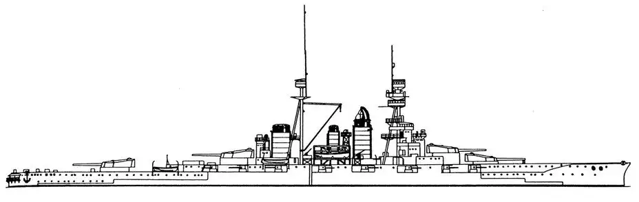 Линейный крейсер «Конго» перед началом первой большой модернизации, 1928 год