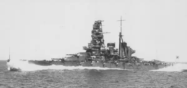 Линейный крейсер «Кирисима» в заливе Сукумо, май 1937 года.