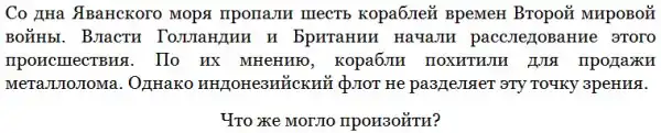 Однако не все согласны, что на этот раз корабли, находящиеся на глубинах до 70 метров, попросту украли. Пол Кооле из голландской транспортной компании Mammoet, занимающейся подъемом затонувших кораблей, утверждает: