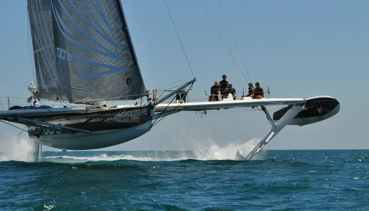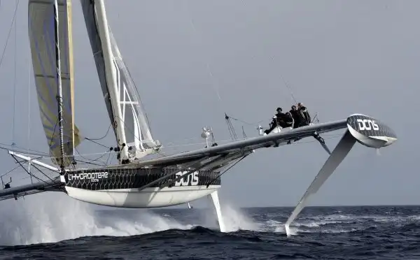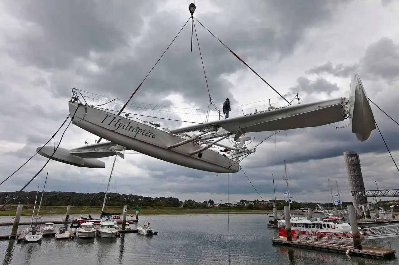 Hydroptere создан группой французских инженеров для того, чтобы показать отличные перспективы парусных средств передвижения по воде. Ведь этот парусник может разгоняться до скорости 55,5 узлов, что равно 103 километра в час.