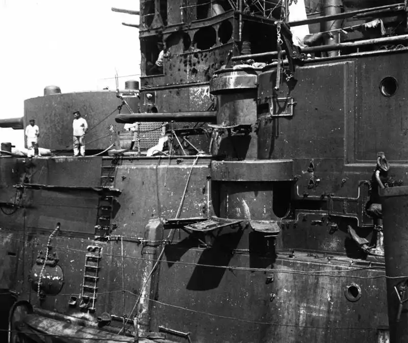 2. В ходе боя на коротких дистанциях будут большие повреждения среди незащищенной броней артиллерии (здесь имеются ввиду пушки 75-мм и ниже, обычно стоявшие открыто и не в казематах). Это, безусловно, ослабит возможности кораблей противостоять атакам вражеских миноносцев, а таковых японцы, по предположению В.К. Витгефта, стянули не меньше 50.