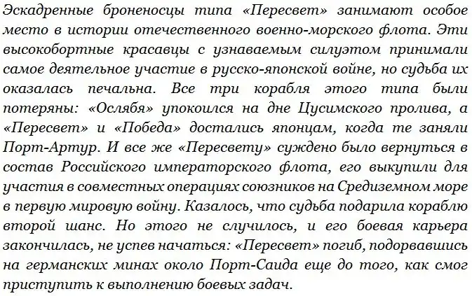 Для того, чтобы понять историю эскадренных броненосцев типа «Пересвет», необходимо связать их проектные характеристики с теми представлениями о роли и задачах флота, которые существовали во время их проектирования. Интересно, что монографии таких уважаемых авторов, как Р.М. Мельников, В.Я. Крестьянинов, С.В. Молодцов в общем-то дают всю необходимую информацию по данному вопросу, и внимательный читатель, знакомый с историей как отечественного, так и иностранных военно-морских флотов сможет сделать все необходимые для себя выводы. Но все же уважаемые мэтры не акцентировали внимание читателей на этом аспекте, мы же постараемся раскрыть его максимально полно (насколько это возможно для формата статьи, разумеется).